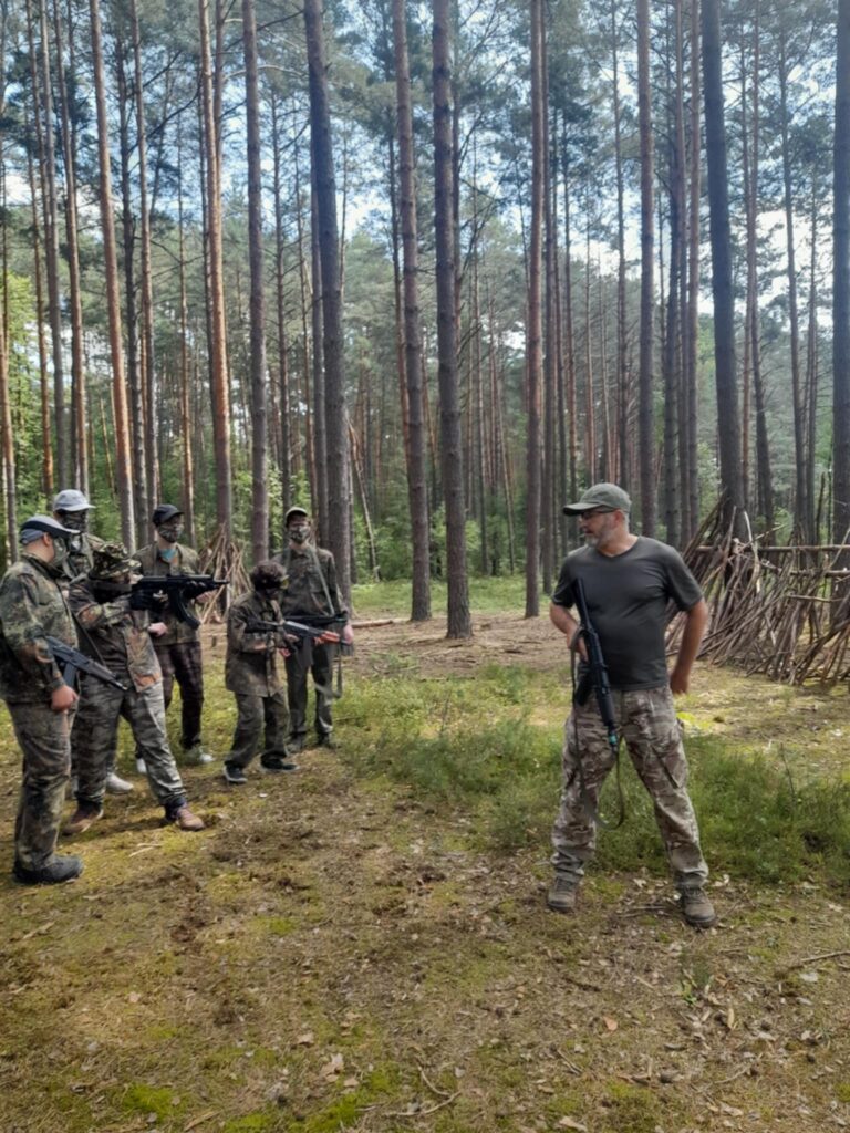 - komplet odzieży do wybrudzenia, której nie będzie żal zniszczyć – doskonale sprawdzają się ciuchy wojskowe lub stylizowane na wojskowe